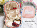 大人気のアクセサリーポーチにニューフェイスが仲間入り!Ami de Clair アミドゥクレール アクセサリーポーチ ピンクです。貝殻のような丸いフォルムに水彩風花柄のシフォンフリルが縁取りが素敵です。大切なアクセサリー&ジュエリーをしっかり収納できる工夫がたくさん!リングホルダーやピアスホルダーに加え、ファスナー部分はちょっとした小物が収納できるようになっています。外地はやわらかく肌触りの良いベロア素材を採用。内側は光沢のあるサテン地で高級感を演出。開いた状態でも可愛いアクセサリーポーチです。旅行用にはもちろん、普段の付け替え用に持ち歩いたり、お家の収納用にも◎。贈り物にもおすすめです。