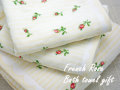ストライプに小さなフレンチローズをあしらったふわふわ気持ちいい!バスタオルギフトです。バスタオルは長さ145cmと大きめ。コットン100%で体をやわらかく包みます。贈り物に最適です。