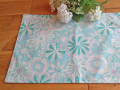 爽やかなブルー系のグラデーションがが印象的なランチョンマットです。珍しいデザインの大きな花柄が食卓を彩ります。