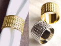バングル風デザインがおしゃれなナプキンリングです。シンプルながら、縁取りの装飾や、表面の凹凸感など細部までこだわったデザインです。どんなテーブルコーディネートにも合わせやすいので、様々な場面で活躍してくれそうです。カラーはゴールドとシルバーの2種類からお選び頂けます