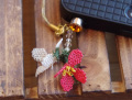 【トルコ雑貨】トルコ伝統のレース編み”イーネオヤ”のイヤホンジャックです。立体的に編まれたホワイト&レッドのお花がゆらゆら揺れてとってもフェミニン♪ストーンビーズもキラッと煌めき女子心つかまれます♪スマホやiphone、ipad,ipodなどをおしゃれにかわいく飾ってくれます。