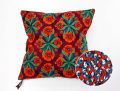 michael millerの45cm角クッションカバー。まったりとコクのあるルビーレッドをベースにこっくりオレンジの花々が美しく印象的なデザイン。他には無い配色がとても刺激的で、お部屋の雰囲気がガラッと変わります。裏側はお花のつぼみけを沢山描くデザインで、リバティプリントの様にも見えます。ルビーレッドの縁取りも素敵で全体の雰囲気をまとめあげています。裏表で別のプリントを使い、表情が変わるので2パターンで楽しめるのも嬉しいポイントです。