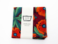 michael millerの48cm角の大判ハンカチです。まったりとコクのあるルビーレッドをベースにこっくりオレンジの花々が美しく印象的なデザイン。他には無い配色がとっても刺激的♪生地はしっかりした厚手の綿100%。おしゃれなハンカチを持ち歩いたら気分をちょっと上げてくれそう♪michael millerの帯付でプチギフトにもおすすめです。