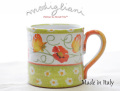 イタリア陶器ブランドの老舗【Modigliani モディリアーニ】から素敵なマグカップが届きました!花々が元気に描かれた「FIESOL」シリーズ。イタリアの陽気な雰囲気が感じられるあたたかみのある色合い。イエローとオレンジのグラデーションが美しく、白い小花が可愛らしい♪400mlも入る大容量で、飲み物がたっぷり入るのも嬉しいです♪新築祝いや結婚祝いなどの贈り物に最適です。