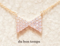 シンプルなリボンモチーフに煌めくビジューをあしらった大人可愛いネックレス。ピンクゴールドチェーンは女性らしくフェミニンな印象。シャープなリボンは洗練されたおしゃれな雰囲気を演出してくれます。