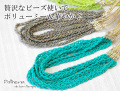 1本でも贅沢なビーズネックレスを7本も連ねた圧倒的な存在感のビーズネックレス。7本それぞれ長さが違うので重ねると幅広の1本のようにもみえます。ランダムに重ねると無造作感が出てそれはそれでまた素敵です♪上部には丸いビーズを使用しアクセントをつけています。取り外しはナスカン式で長さ調節可能です。大人っぽく上品なカラーバリエーション3タイプからお選びいただけます。