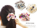 キラッと煌めくビジュー付フラワーがついたシュシュ。フラワーは全部で3つ付いています。髪を結ぶとお花がひょこっと覗いてさりげなく可愛さをプラスしてくれます。ボリューミーなタイプなので髪を結んでもしっかりボリューム感が残ります。使わないときは手首に着けても可愛いです♪全3カラーよりお選びいただけます。