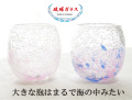沖縄の伝統工芸品「琉球ガラス」の気泡の海タルグラスのカゴ入りギフトセットです。丸みのあるフォルムと優しいパステルカラーが美しく女性に人気の高いシリーズ。名前の通り海の中をイメージさせる気泡の海シリーズは大きな泡が特徴的です。細かい泡はよく見かけますが、気泡の海シリーズの泡の大きさはとても難しく、泡が大きすぎるとガラスが薄くなり割れてしまい逆に小さ過ぎると表現力が落ちるのでこの絶妙の大きさが見る人を惹きつけます。ピンクとホワイトのミックスと、青とピンクのミックスの2色のグラスがカゴに入った数量限定のギフトセット。カゴは小物入れと使えて嬉しい!こちらのグラスは確かな技を持つ者にのみ与えられる沖縄県指定伝統工芸士の池宮城善郎さんの「煌工房」で作られたものです。結婚祝いやお引越し祝いなど大切な方への贈りものに最適です。