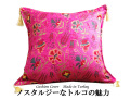 トルコの伝統的な柄でもあるざくろ、チューリップ、カーネーションが織られたタッセル付クッションカバーです。しっかりとした厚手の生地で少し光沢感のあるコーデュロイのように触り心地の良い生地で高級シェニール素材を使用。トルコの人気柄で縁起が良いとされるざくろや、チューリップ、カーネーションがカラフルに描かれたデザイン。ラズベリーピンクはビビットピンクのように濃厚なピンク色でお部屋がパッと明るい雰囲気に。サイズは42×42cmですが、45角のヌードクッションもご利用いただけます。(写真でも45×45角ヌードクッションを使用しています)メール便でのお届けも可能です。高級感のあるクッションカバーは贈り物にもおすすめです。