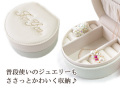 可愛らしいメッセージが刺繍されたジュエリーボックス。こちらは「Foryou」の刺繍が入っています。小さめサイズなので普段良く使うアクセサリーを入れておくのにおすすめです。小さいながらもリングホルダーやポケット、中央には小物が入るスペースもあり、機能性抜群!ホワイトの合皮と布製の同色系ツートン。合皮を使用しているので高級感があります。素敵なデザインなのでテーブルの上に置いてインテリアとしても楽しめます。また、ひとつあると嬉しいジュエリーボックスは女性へのプレゼントにも最適です。