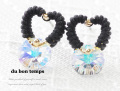 布紐を巻き付けたハート型フープが独特なデザインのピアス。揺れるキュービックジルコニアが光を取り込みキラキラと煌きます。揺れるピアスは女性らしさをさらにアップさせてくれるといわれています。耳元に視線が集中するので小顔効果も。控えめなトーンなので仕事中でもオフタイムでも楽しめます。