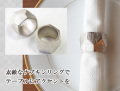 バングル風デザインがおしゃれなナプキンリングです。シンプルながら、マットな質感、表面の凹凸感、カクカクしたフォルムなど細部までこだわったデザインです。テーブルコーディネートのアクセントに♪どんなテーブルコーディネートにも合わせやすいので、普段の食卓から、おもてないなど様々な場面で活躍してくれそうです。