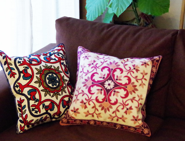 タイ モン族の鮮やかな刺繍が施されたクッションカバー。鳥と植物がデザインされ、その独特な色使いがとっても印象的です。インテリアにプラスすればお部屋をぱっと明るく華やかにしてくれます。アジアンテイストのお部屋以外にも北欧風のインテリアにもマッチします。厚みがありしっかりめの生地でほっこりとした質感です。