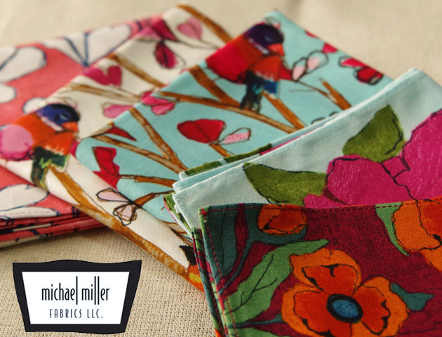 michael millerの48cm角の大判ハンカチです。まったりとコクのあるルビーレッドをベースにこっくりオレンジの花々が美しく印象的なデザイン。他には無い配色がとっても刺激的♪生地はしっかりした厚手の綿100%。おしゃれなハンカチを持ち歩いたら気分をちょっと上げてくれそう♪michael millerの帯付でプチギフトにもおすすめです。