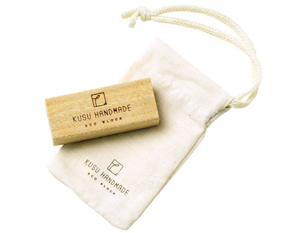 エコブロックは九州産の天然のくすのきを利用し、一つ一つ職人の手で作られた、天然素材の衣類用防虫ブロックです。楠に含まれる天然成分(樟脳)が大切なお洋服を優しく、そしてしっかりと守ります。カンフルオイルを染み込ませることにより、くり返し使えます。