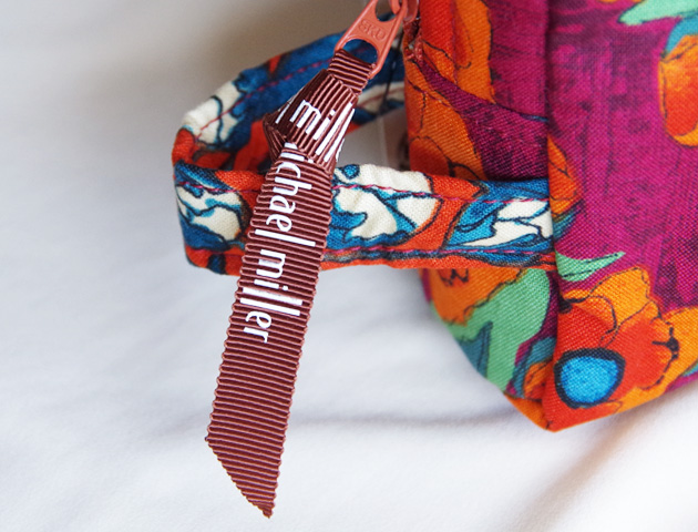 鮮やかで少しエッジの効いたデザインが人気のニューヨーク生まれのファブリックブランドmichael millerのポーチ フローラルトリペットです。生地を輸入し縫製は日本国内の日本製。その魅力はなんといってもこの鮮やかな柄!深いレッドにオレンジの大きな花、葉の緑が印象的。大人っぽく少しオリエンタルな雰囲気を感じます。内側にはオレンジのつぼみ柄採用し、ポーチを開けてもちゃんと可愛い♪のも嬉しいポイントです!また、その内側の生地とサイドに付いた持ち手の部分が同じ柄で統一されているのも素敵です。開閉はジッパー式でリボンにはmichael millerのロゴが入っています。何個あっても使えるポーチは贈り物にも最適です。