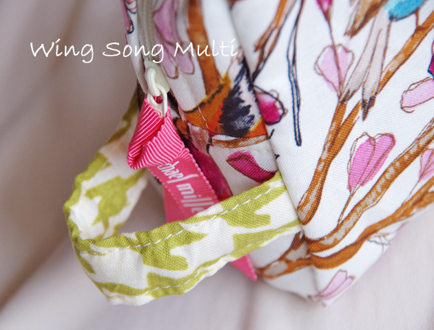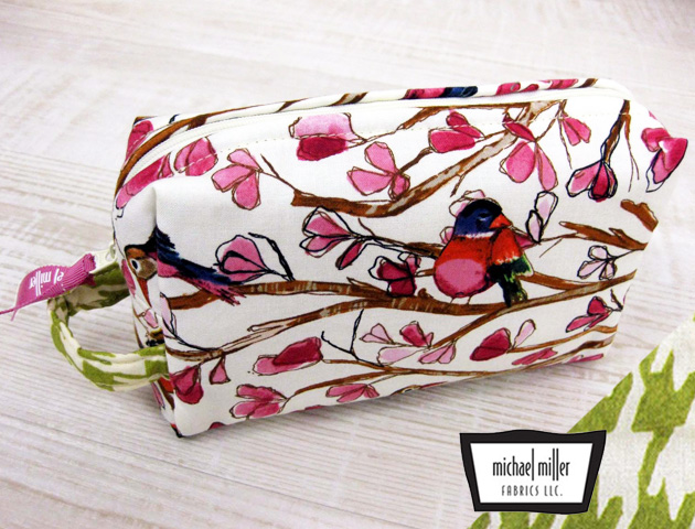 鮮やかで少しエッジの効いたデザインが人気のニューヨーク生まれのファブリックブランドmichael millerのポーチ ウィングソングマルチです。生地を輸入し縫製は日本国内の日本製。その魅力はなんといってもこの鮮やかな柄!ウィングソングアクアと色違いで、こちらはバックがホワイト。木々の上でさえずる小鳥たちと花のピンクが可愛らしいガーリーな印象。内側には緑の千鳥格子柄を採用し、ポーチを開けてもちゃんと可愛い♪のも嬉しいポイントです!また、その内側の生地とサイドに付いた持ち手の部分が同じ柄で統一されているのも素敵です。開閉はジッパー式でリボンにはmichael millerのロゴが入っています。何個あっても使えるポーチは贈り物にも最適です。