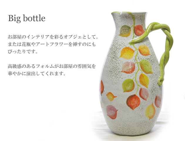 イタリア陶器ブランドの老舗【Modigliani モディリアーニ】から素敵なビッグボトルが届きました!イタリアのウンブリア州をイメージして描かれた優しいタッチの木の葉柄がとても美しい「UMBRIA VERDE」シリーズのビッグボトル(花瓶)。ウンブリア州は自然が多くイタリアの中心に位置していることから『イタリアの緑のハート』とも呼ばれている州です。このビッグボトルは花瓶として生花やアートフラワーを飾るのはもちろん、お部屋のオブジェとして飾ってもお部屋を華やかに彩ります。結婚祝いやお引越し祝いなどにもおすすめです。