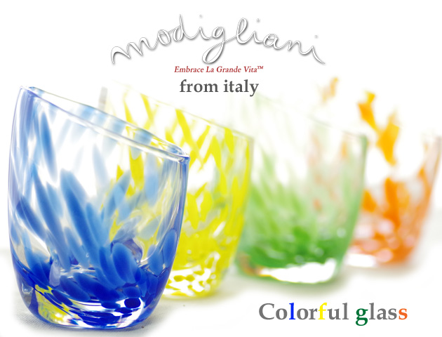 Modiglianiモディリアーニからカラフルなイタリア製グラスのギフトセットが届きました。限定品で在庫希少です。カラフルなカラーグラスを散りばめて大小の水玉模様を施しています。使いやすいサイズなのでジュースからビール、焼酎まで幅広くお使い頂けます。ブルー、イエロー、グリーン、オレンジの4カラーがセットになっています。ギフトボックスに入れてお届け致します。こんなに素敵なグラスでお酒を嗜めばいつもよりもっと美味しくなりそうですね♪お引越し祝いやご結婚祝いなどの贈り物に最適です。