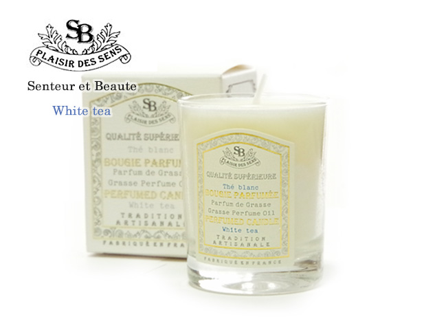 サンタール・エ・ボーテのアロマキャンドル ホワイトティです。優しい香りとキャンドルのほのかな灯りがお部屋を優しく包みます。香料は香水で有名なグラース産、そのほかの原料もすべてフランス国内から仕入れをし、高い品質を確立している「サンタール・エ・ボーテ社」。ホワイトティはほのかに紅茶の香り。すっきりした優しい香りです。 シンプルかつ高級感のあるパッケージはギフトにも◎。ラッピング無料で承ります。