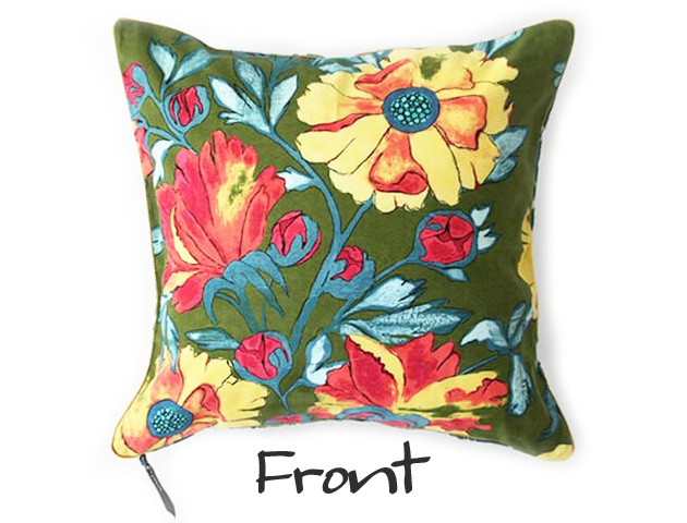 鮮やかでエッジの効いたデザインが人気のニューヨーク生まれのファブリックブランドmichael miller(マイケルミラー)のクッションカバー ジプシーヴァインオリーブです。生地を輸入し縫製は日本国内の日本製。その魅力はなんといってもこの鮮やかな柄!人気柄ジプシーヴァインを落ち着いたオリーブ色で雰囲気を変えて登場。濃いグリーンをベースに黄色い花が咲き誇り、オリエンタルな雰囲気を感じます。裏側は雰囲気がガラッと変わる落ち着いたデザイン。裏表で表情が変わるので2パターンで楽しめるのも嬉しいポイントです。