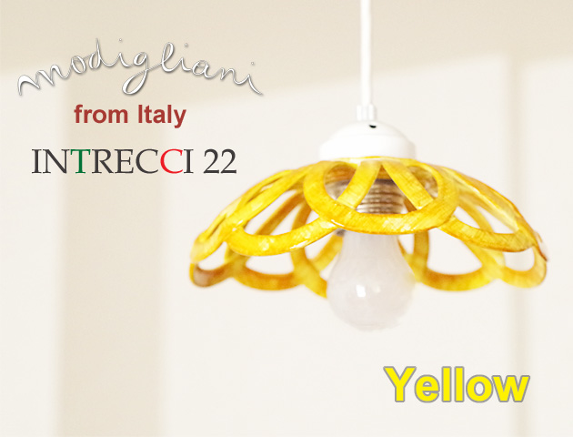 圧倒的な存在感を放つペンダントライト。丸みを帯びたフォルムが優しい印象の「INTLAMPC/22」イエローです。イタリアModiglianiモディリアーニの技術で仕上げたアーチを重ねたような形状のシェードから光がこぼれます。陶器の温かい雰囲気が心地よい空間を演出してくれます。原色のイエローではなくマスタード色っぽい落ち着いたイエロー。イタリアの陽気な雰囲気を感じるイエローはお部屋をぱっと明るくしてくれます。24に比べて少し小さ目のシェードですのでダイニングテーブルの上のペンダントライトにおすすめです。コードやソケット部分は日本仕様のものに付け替えてありますので、安心してお使い頂けます。取り付けは簡単な引掛けシーリング式です。