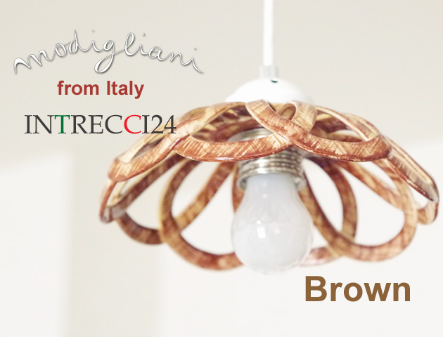 圧倒的な存在感を放つペンダントライト。丸みを帯びたフォルムが優しい印象の「INTLAMPC/22」ブラウンです。イタリアModiglianiモディリアーニの技術で仕上げたアーチを重ねたような形状のシェードから光がこぼれます。陶器の温かい雰囲気が心地よい空間を演出してくれます。柔らかい雰囲気のブラウンはナチュラルなお部屋に合わせやすく飽きの来ないカラー。24に比べて少し小さ目のシェードですのでダイニングテーブルの上のペンダントライトにおすすめです。コードやソケット部分は日本仕様のものに付け替えてありますので、安心してお使い頂けます。取り付けは簡単な引掛けシーリング式です。
