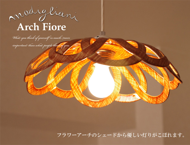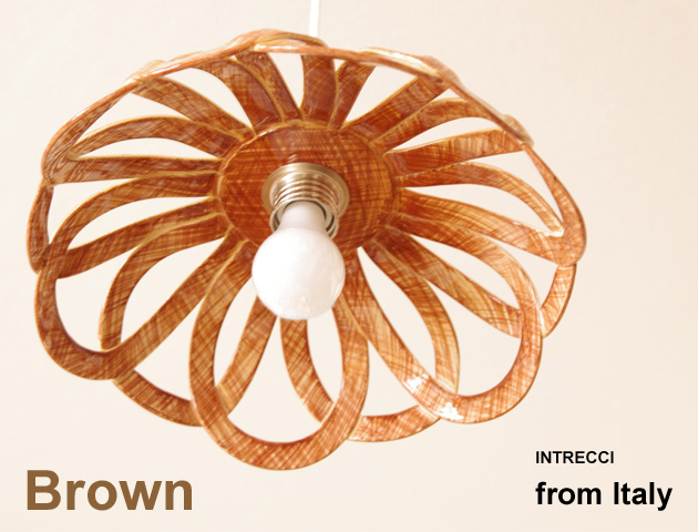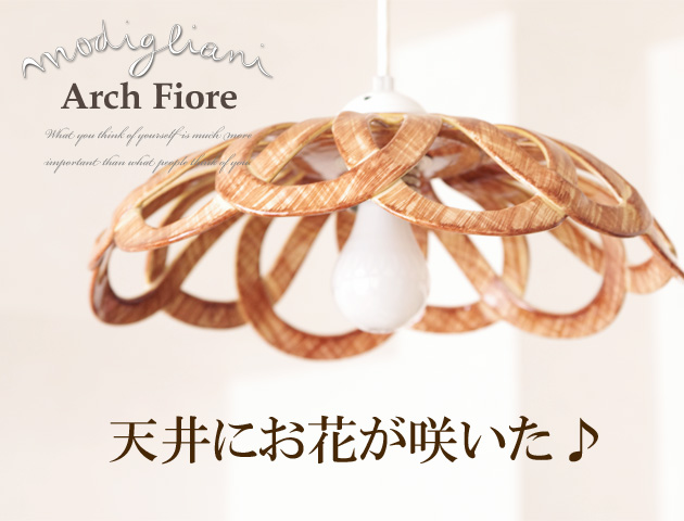 圧倒的な存在感を放つペンダントライト。丸みを帯びたフォルムが優しい印象の「INTRECCI "Arch Fiore"」のブラウンです。イタリアModiglianiモディリアーニの技術で仕上げたアーチを重ねたような形状のシェードから光がこぼれます。陶器の温かい雰囲気が心地よい空間を演出してくれます。柔らかい雰囲気のブラウンはナチュラルなお部屋に合わせやすく飽きの来ないカラー。コードやソケット部分は日本仕様のものに付け替えてありますので、安心してお使い頂けます。取り付けは簡単な引掛けシーリング式です。