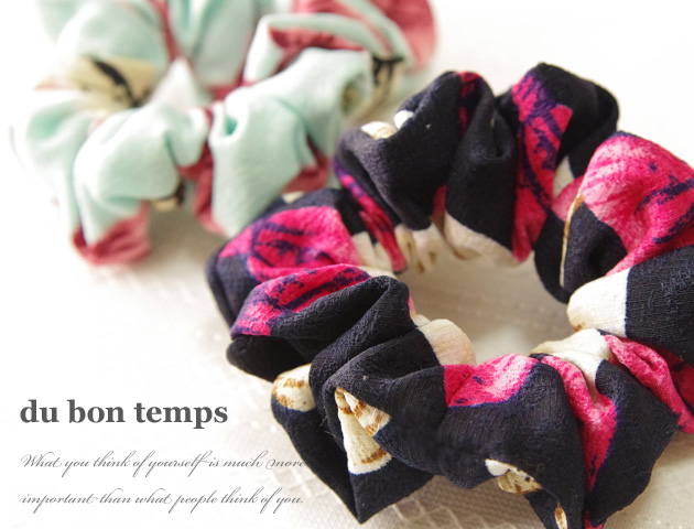 少しエッジの効いたおしゃれシュシュ。カラフルなリボンプリントが可愛くヘアスタイルを飾ってくれます。つけるだけでいつものヘアスタイルがパッと華やかに!腕に着けてもカワイイです。しっかりした素材で髪を結んでも形が保たれやすいのもうれしい。お仕事中などちょっと髪をまとめたい時などにバッグの中にひとつあると重宝するアイテムです。いくつあっても困らないシュシュはプチギフトにもおすすめ♪2カラーよりお選びいただけます。