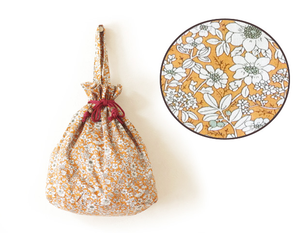 Floral a dosシリーズの巾着ポーチ。人気の巾着型はマチ付の大容量で使いやすく、メイク道具などの普段使いのほかに旅行での荷物整理(ランジェリーケースなど)にもおすすめです。また、手提げのようにして持ち歩けるので、習い事や、ジム通いの際の少量の着替え入れなどにも使えてGood!落ち着いたオレンジ色にホワイトの花々が描かれた優しいデザイン。さらっとした肌触りが気持ちいい!また、お弁当箱を入れるランチポーチとしてもご利用頂けます。ひとつあると便利な巾着ポーチです。