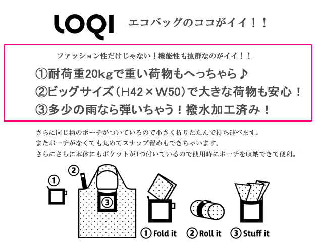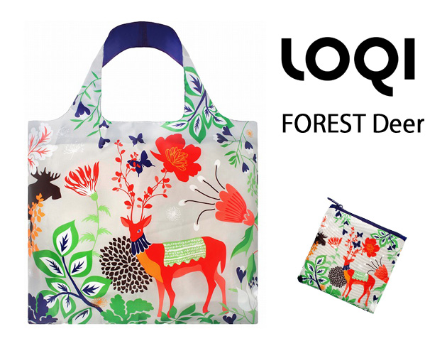 ドイツのデザインブランド【LOQI/ローキー】のおしゃれエコバッグ、FOREST Deerです。 デザイナーCristina Caramidaが手掛けた森の中の木々や花々、動物たちを色とりどりに、そして悠々と描いたデザイン。こちらは裏表で違うデザインになっています。また、かわいいだけじゃないのがローキーのエコバッグ!耐重20kgで荷物が増えても安心!同じ柄のポーチが付いているので使わないときはコンパクトに持ち歩けます。お買い物中はバッグに付いた内ポケットにしまえるので失くす心配もありませんし、ファスナー付なのでバッグを収納するだけでなく、コスメや小物入れとして使ってもOK♪さらに本体はクルッと小さく丸めて留められるのでポーチが無くてもコンパクトに持ち歩けます。さらにさらにエコテックスマークが付いて環境にもやさしいアイテムです。お買い物や旅行先の強い味方!!普段使いしたくなるほど可愛いエコバッグ。ちょっとしたギフトにもおすすめです♪