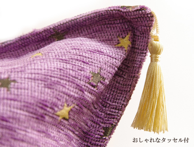 • 【メール便OK】トルコ製 シェニール クッションカバー45 タッセル付 月と星 パープル(紫 )42x42cm