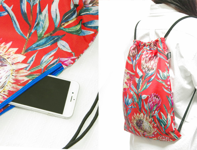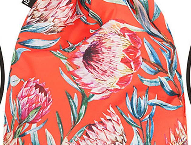 デザイン性の高いテキスタイルを提案し続けるブランドLOQIローキーからバックパック(ナップサック)が新登場!注目度上昇中のナップサックはカジュアルやリゾートスタイルに合わせてさらっと気軽に使えるのが嬉しい!ナップサック自体の重さは85gでとにかく軽く、折り畳めるので旅先でのサブバッグとして活用したり、習い事やジム通い用にひとつあると便利です。こちらのWILD Collection Sugarbushは南米の植物Sugarbushをモチーフに大胆に描かれたデザイン。鮮やかな朱色が、身につけたら心まで元気になりそうなナップサックです。サイドにひとつファスナー付きのポケットが付いているのでスマホやお財布など分けて収納できるので便利です。