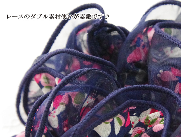 女性らしい小花柄とレースの組み合わせが素敵なシュシュ。カラーも控えめなので小花柄でも子供っぽくならず大人の女性におすすめ。ボリュームもあるので、髪を結んでもペタっとならずふわっと決まります。
