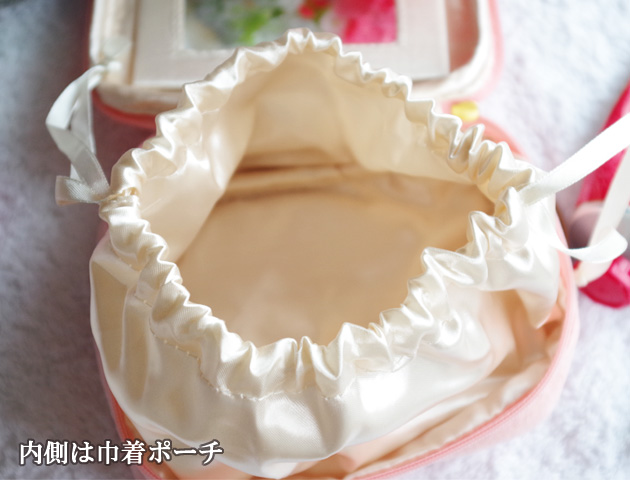これは便利!女性にとってあるとうれしい3役を兼ね備えた機能性ポーチ Ami de Clairアミドゥクレールの化粧ポーチ ピンクです。ポーチを開くとミラーが付いていてちょっと身だしなみをチェックしたい時にとっても便利。また裏側にはポケットティッシュケース付きで、ティッシュポーチとコスメポーチを別々に持ち歩かなくて済むのでこちらも便利!内側は巾着ポーチになっていてコスメやハンドクリームなどしっかり収納できます。外地はやわらかく肌触りが良いベロア素材を採用。フリル部分は水彩風の花柄シフォンで華やかさがプラスされています。内側も光沢のあるサテン生地で高級感があり女心をくすぐるポイント満載。持っているだけでうれしくなるようなコスメポーチです。贈り物にもおすすめです。