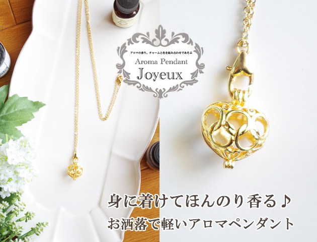 大人気のアロマペンダント(アロマネックレス)『Joyeux ジョワイユ』に着け外しが簡単なロングチェーンタイプが新登場!頭をくぐらせて着けられるので、ネックレスの着け外しが苦手な方にもおすすめ!素材は16KGPで色落ちしずらく煌めきが長続きします。また、通常の金メッキに比べ金の使用量が多いため上品に煌めきます。ハート型の透かしモチーフを外してお好みのアロマオイルを染み込ませたアロマボールを入れて使用します。首にかけるとほんのり香って気分もリフレッシュ♪アロマボールは羊毛製でストーンのものに比べてとても軽く、首や肩への負担が少ないのも嬉しいポイント。アロマボールはお好みの香りごとに変えられるように3個付いています。カラーを替えるとペンダントの雰囲気も変わって、それもまた楽しいです。さらに、持ち運びに便利なベロア調巾着袋もついています。お洒落に取り入れながら香りが楽しめるアロマペンダントは贈り物にもおすすめです。