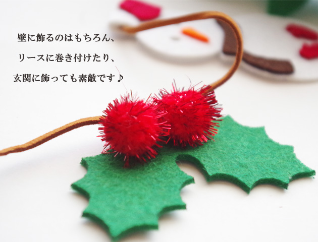 クリスマスモチーフのガーランドでお部屋をデコレーション♪クリスマスシーズンやパーティーなどの飾りつけに最適です。それぞれのモチーフはフェルト製で温かみがあり、カラフルで可愛いものばかり!壁に飾るのはもちろん、ツリーに巻き付けたり、玄関に飾っても素敵です♪また、ツリーなどは大きくて収納にも困りますが、ガーランドなら場所を取らずに収納できるのも嬉しいポイント!これひとつだけでクリスマスムードいっぱいのおしゃれなお部屋に♪