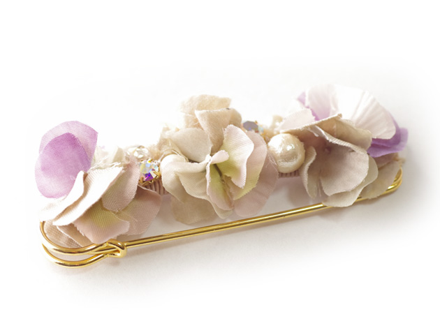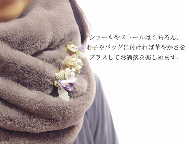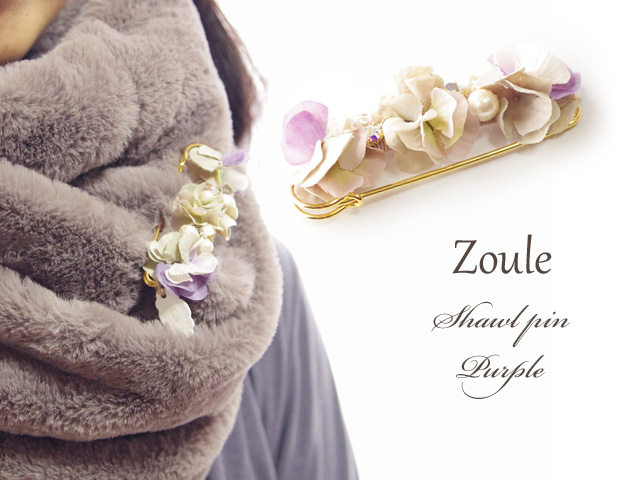 花びらを重ねたグラデーションが美しい「zouleゾーラ」のショールピン(ストールピン)。ショールやストールにはもちろん、スヌードや帽子・バッグなどに着けてワンポイントのおしゃれを楽しめます♪シンプルになりがちなスタイルの差し色に持ってっこいのアイテムです。花びらだけでなく、コットンパールやビジューが顔をだしてエレガントさもプラス。お花だけど可愛くなり過ぎず、大人の女性におすすめのファッションアイテムです。