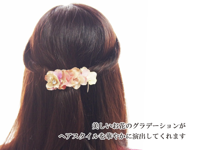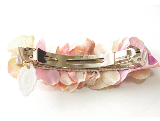 花びらを重ねたグラデーションが美しいzouleゾーラのバレッタです。サイドをくるっとねじって留めるだけでとっても素敵なヘアスタイルに♪暗くなりがちなコーディネートの差し色にもってこいのアイテムです。ビジューとコットンパールがポイントになりエレガント感をプラス。zouleのタグチャームも付いています。お花だけど可愛くなりすぎず大人っぽい!パーティースタイルにも最適。使わない時は置いてあるだけでも可愛い♪贈り物にもおすすめです。