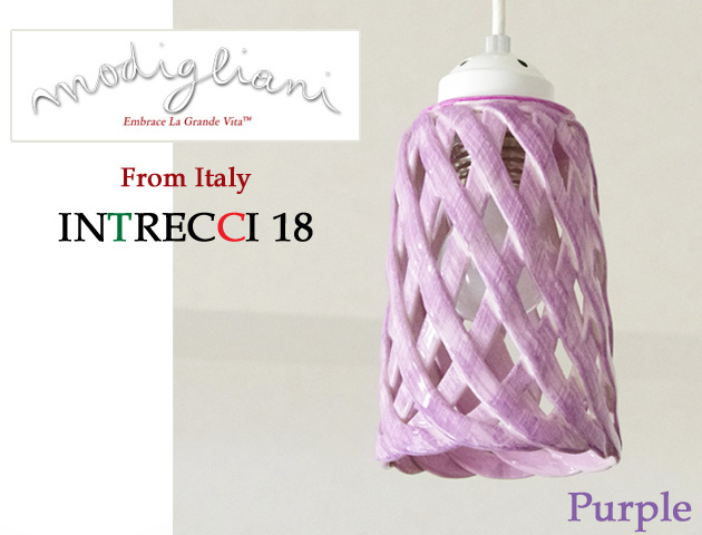 圧倒的な存在感を放つペンダントライト。繊細なデザインが印象的な「INTLAMPC/18」パープル(紫)です。イタリアの老舗陶器メーカーModiglianiモディリアーニの高い技術で仕上げた網目状のシェードから光がこぼれます。陶器の温かい雰囲気が心地よい空間を演出してくれます。照明では珍しいパープル。モディリアーニのパープルは少しホワイトが混ざった優しい紫色です。おしゃれなお部屋の雰囲気づくりをお手伝いします。ダイニングテーブル上のペンダントライトなどにおすすめです。とても珍しい陶器の網目状シェードは末永くお使いいただけるとても素敵なデザインです。コードやソケット部分は日本製のものをお付けしていますので安心してお使い頂けます。取り付けは簡単な引掛けシーリング式です。